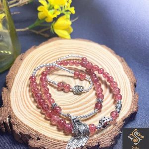 Vòng tay Thạch anh Dâu Tây mix Charm Bạc xinh